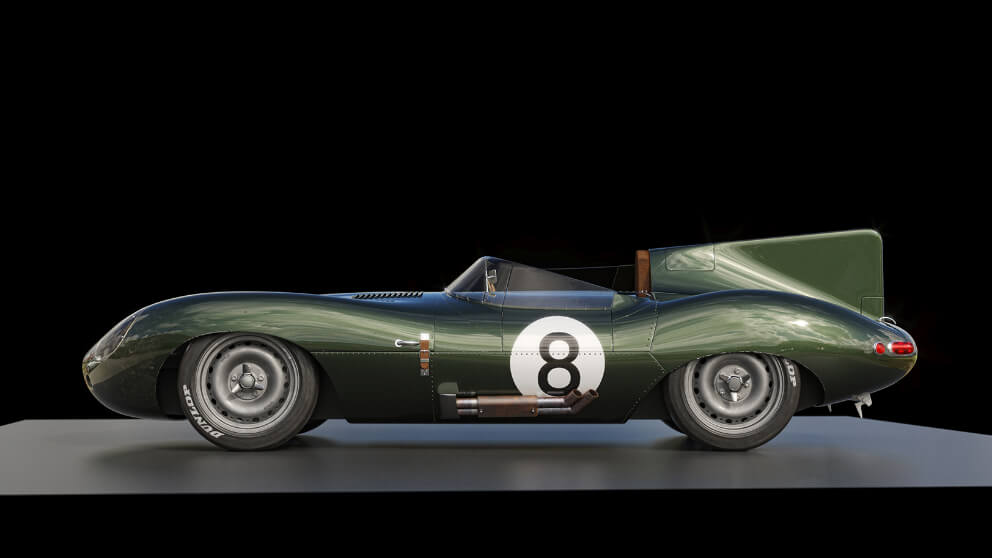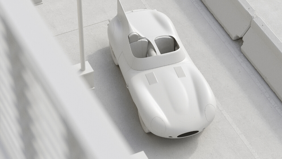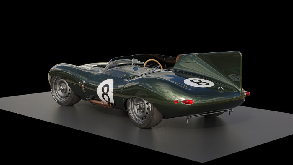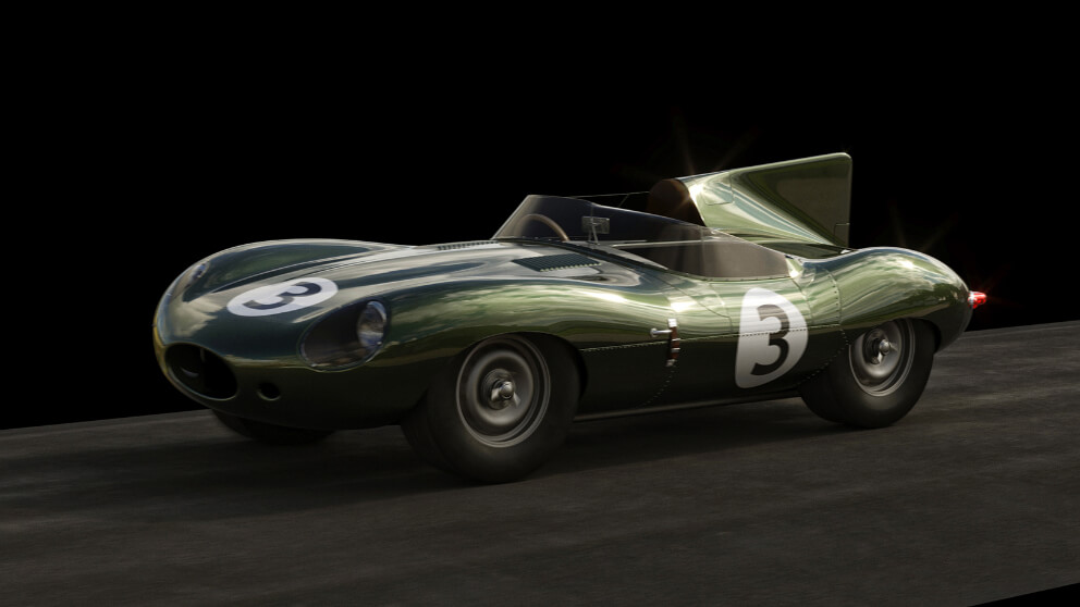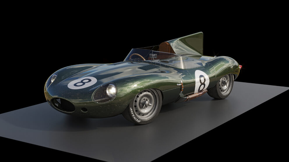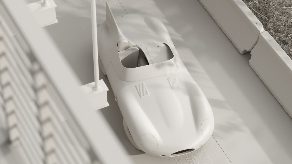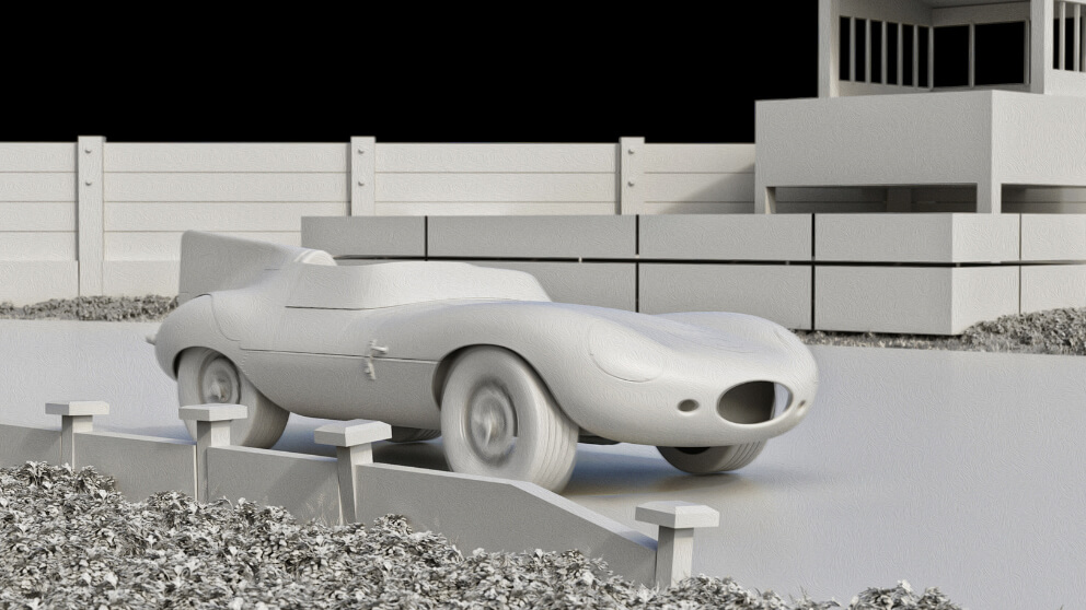 During the beginning stages of this project, I trawled the internet for as many reference photos of the car as possible, as well as viewing as much historic film of the D-Type, specifically whilst racing. Before I embarked on an automotive CGI image, I thoroughly enjoyed the research that goes into it, constantly striving to understand what was going through the minds of the cars designers, owners and drivers.
