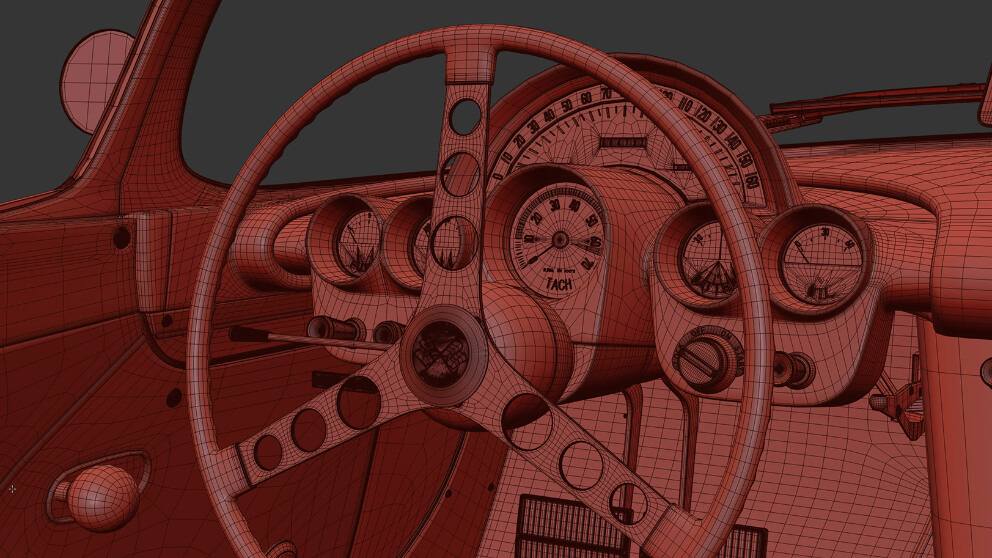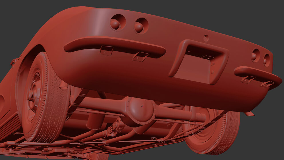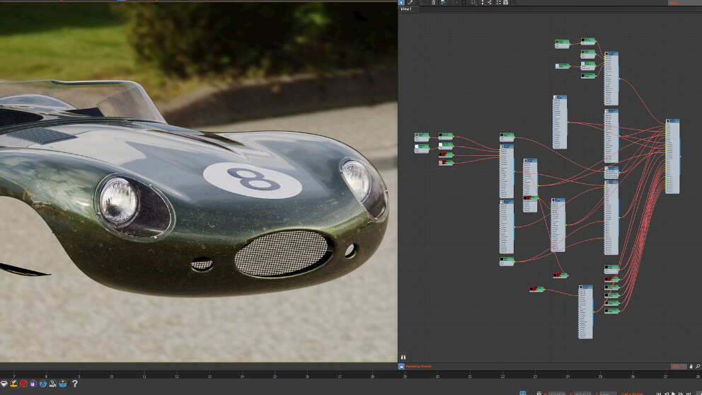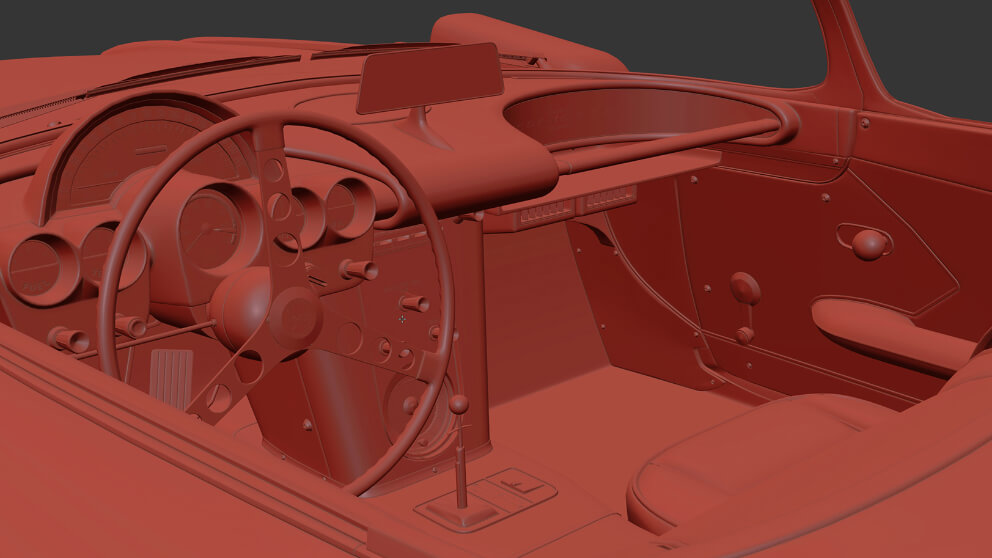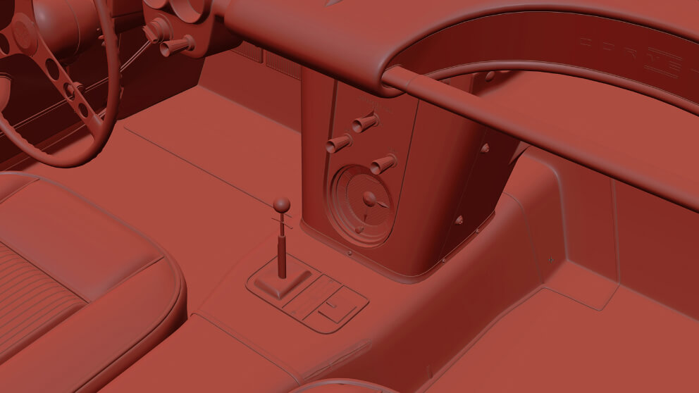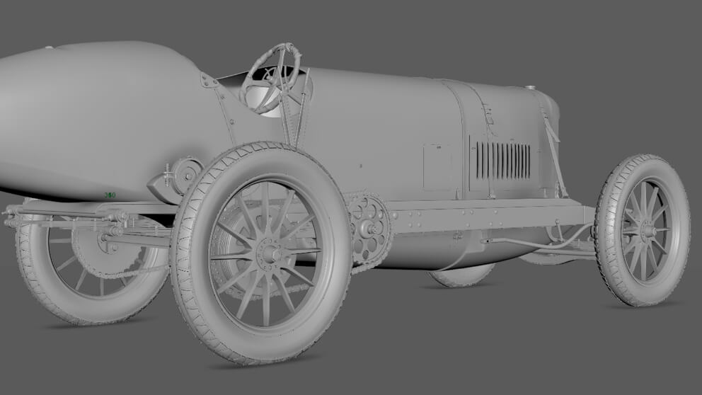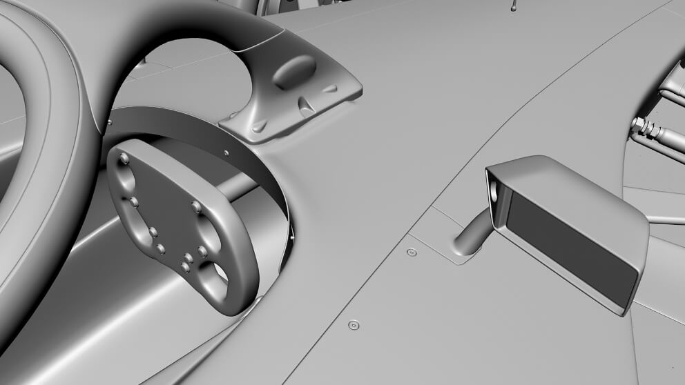 During the beginning stages of this project, I trawled the internet for as many reference photos of the car as possible, as well as viewing as much historic film of the D-Type, specifically whilst racing. Before I embarked on an automotive CGI image, I thoroughly enjoyed the research that goes into it, constantly striving to understand what was going through the minds of the cars designers, owners and drivers.