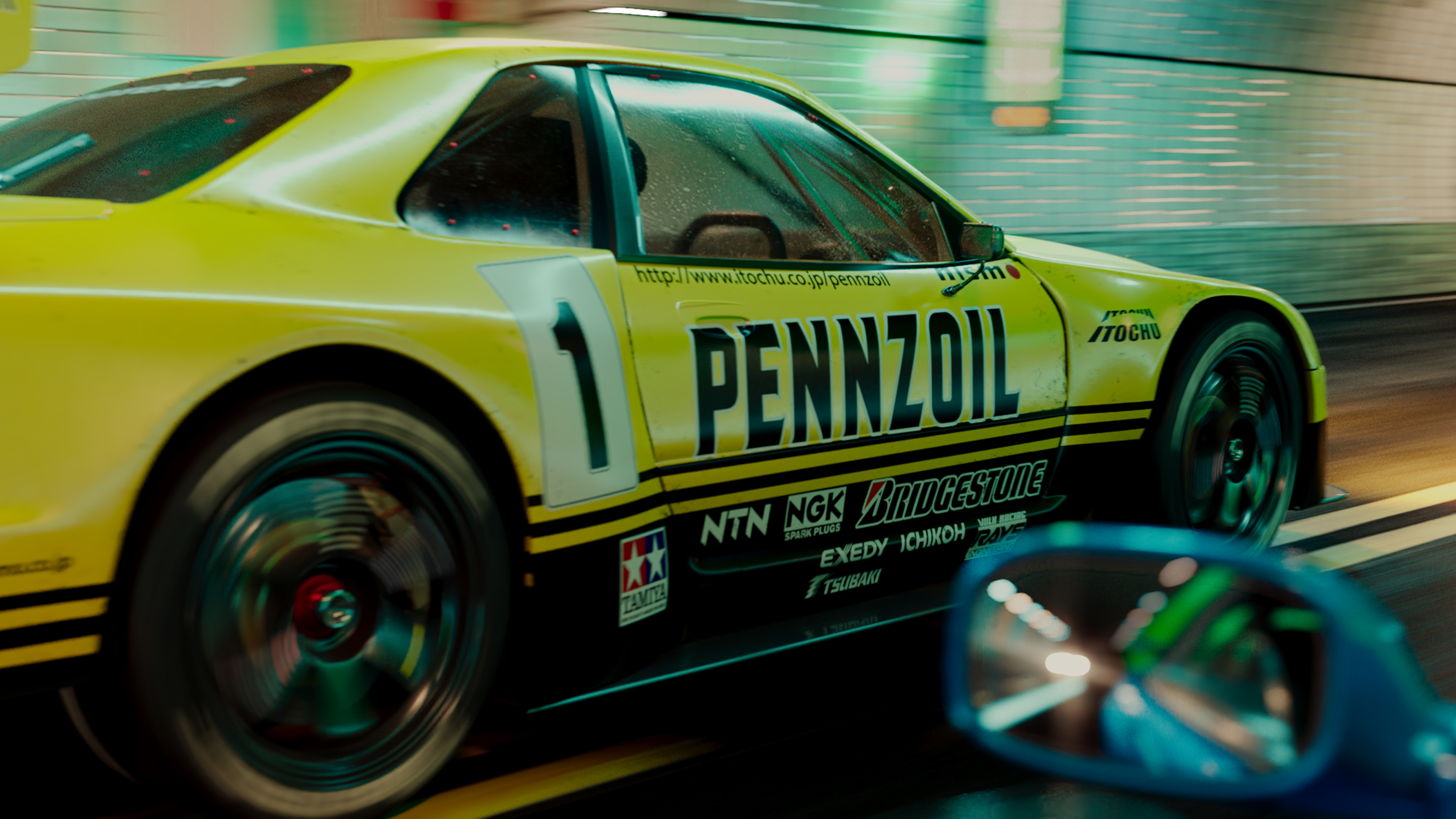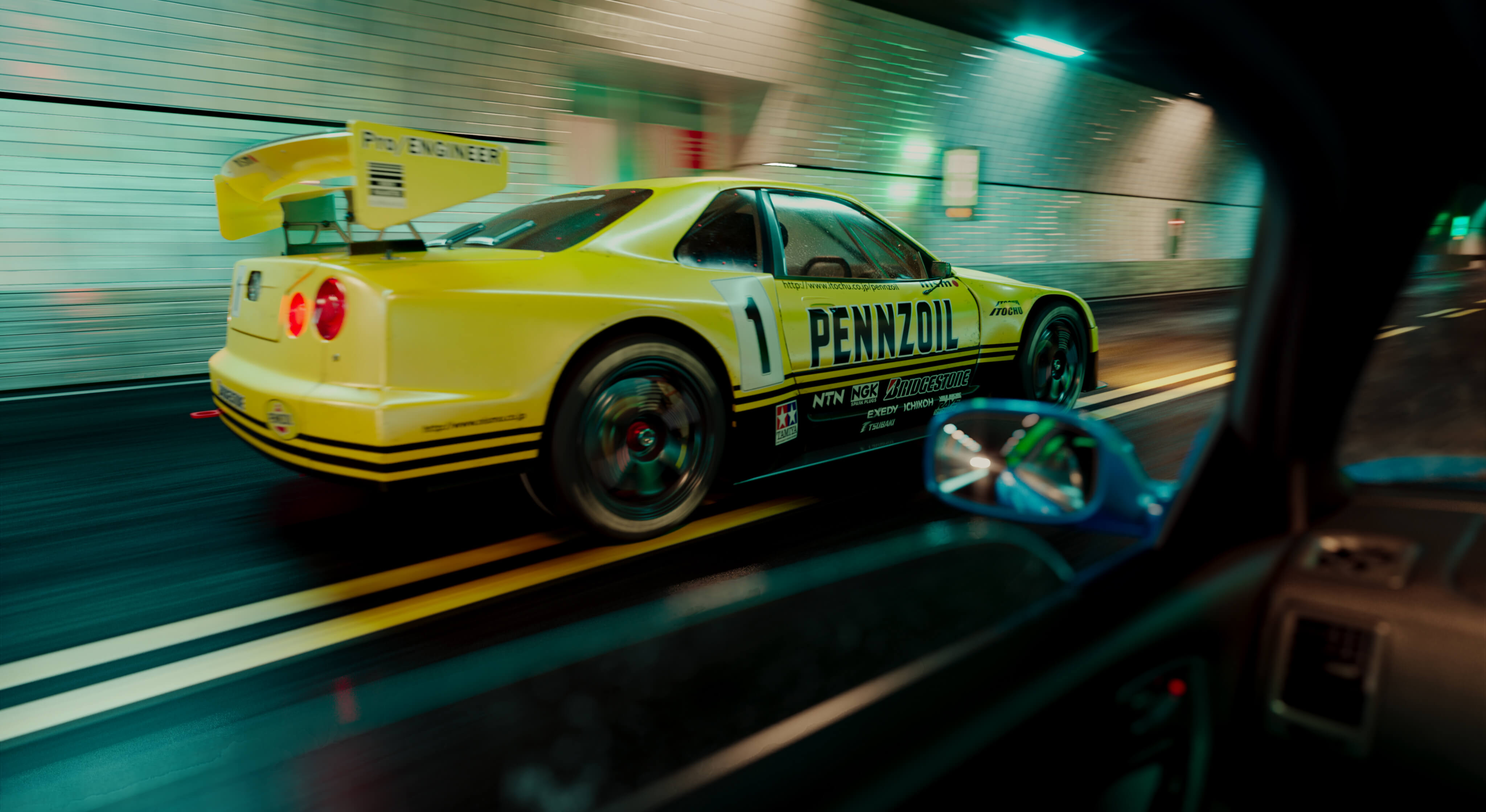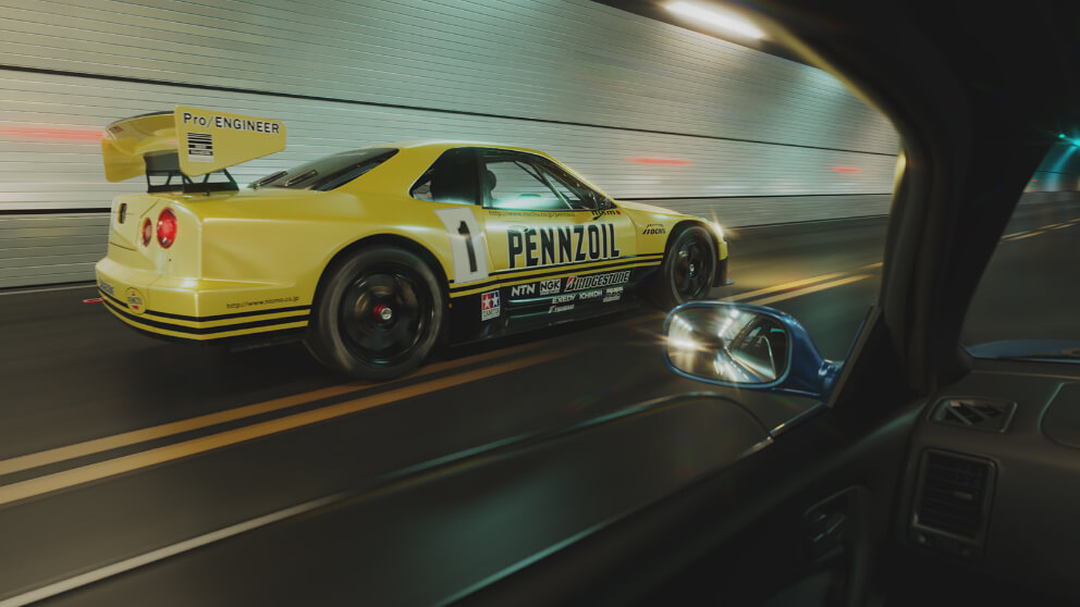 One of the most iconic cars was the Nissan Skyliner, the race car version from the JGTC, rocking the all yellow Pennzoil scheme.