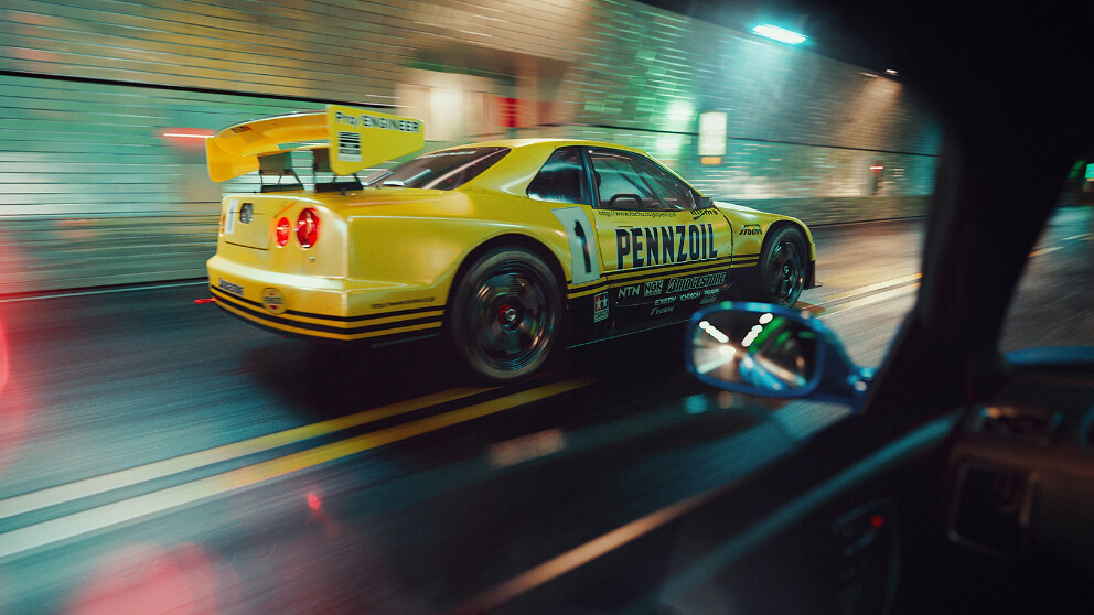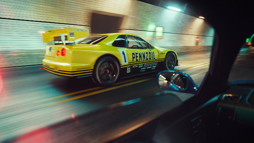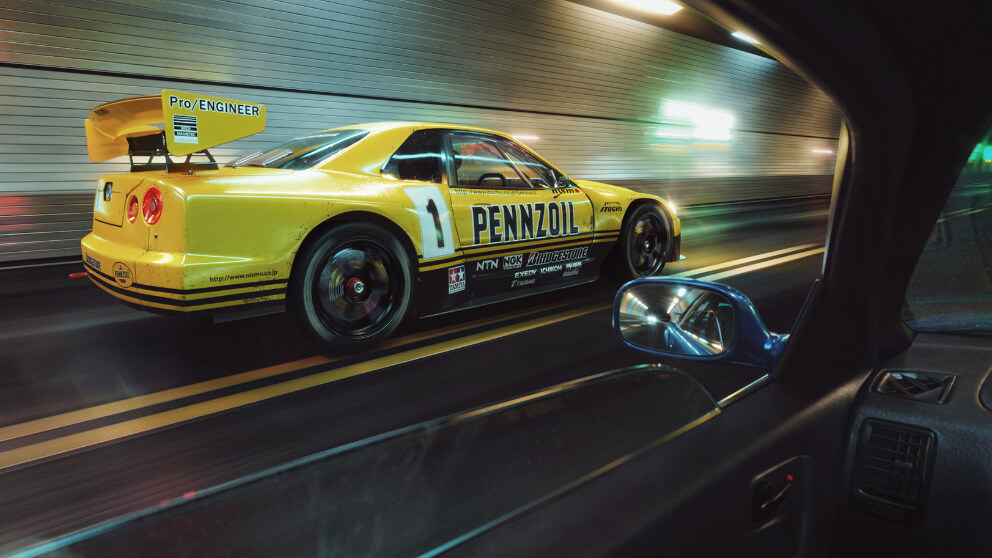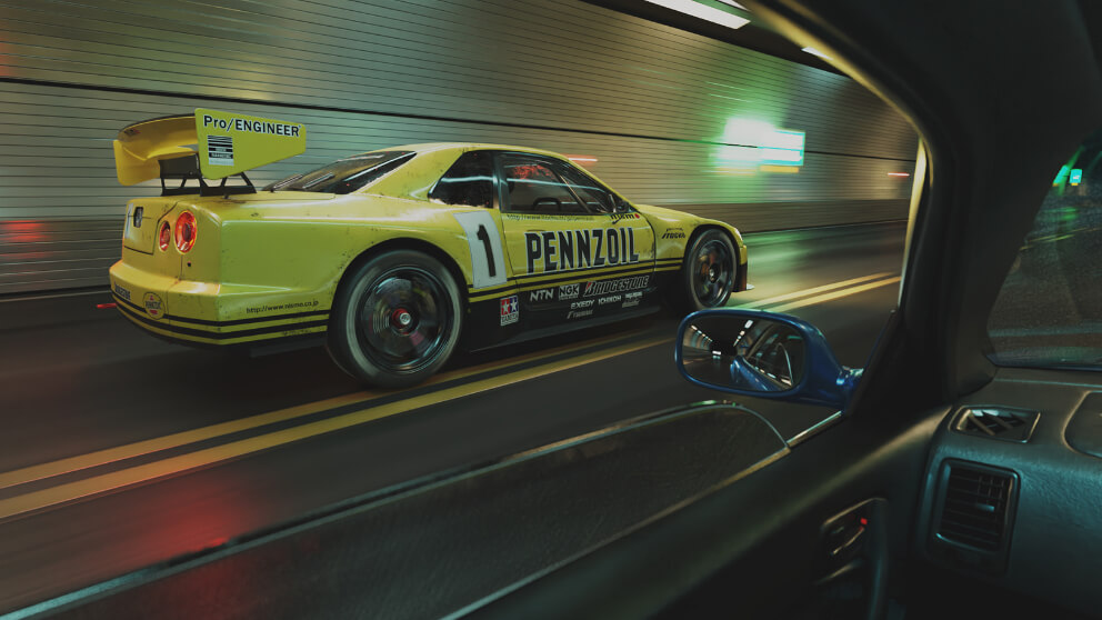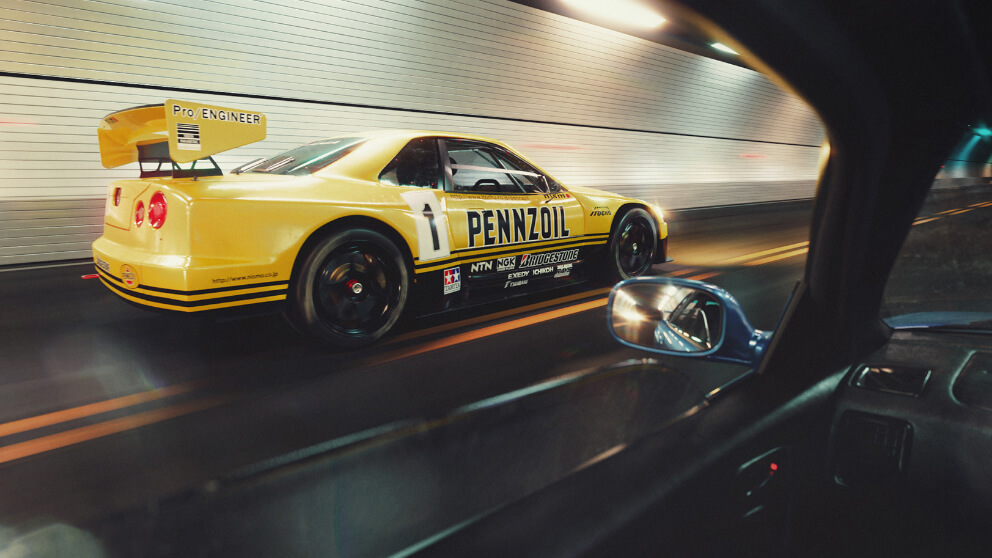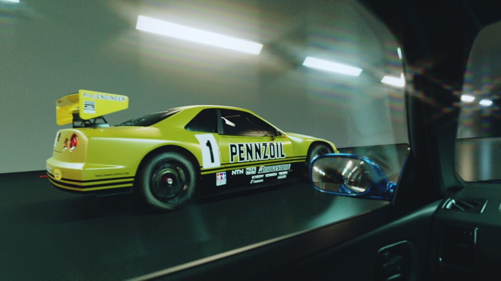 One of the most iconic cars was the Nissan Skyliner, the race car version from the JGTC, rocking the all yellow Pennzoil scheme.