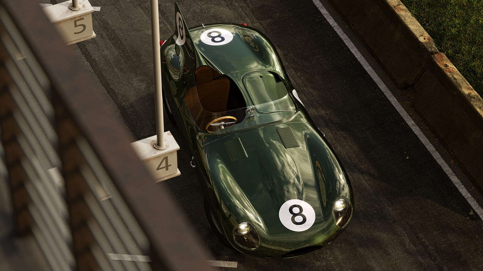 I chose the Jaguar D-Type as I believe it's arguably the most elegant, and design driven vehicle produced in the 1950s. To emphasize the shape and lines of the Jaguar, without distraction from a busy scene, I chose a solitary, pit-lane environment.