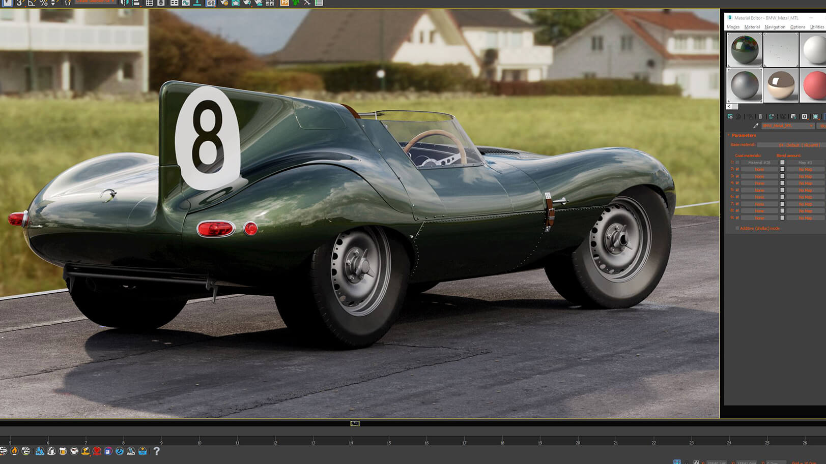 During the beginning stages of this project, I trawled the internet for as many reference photos of the car as possible, as well as viewing as much historic film of the D-Type, specifically whilst racing. Before I embarked on an automotive CGI image, I thoroughly enjoyed the research that goes into it, constantly striving to understand what was going through the minds of the cars designers, owners and drivers.