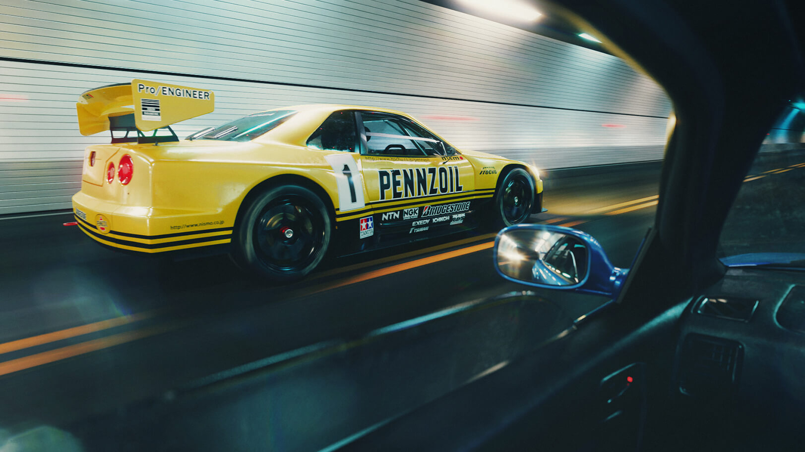 One of the most iconic cars was the Nissan Skyliner, the race car version from the JGTC, rocking the all yellow Pennzoil scheme.